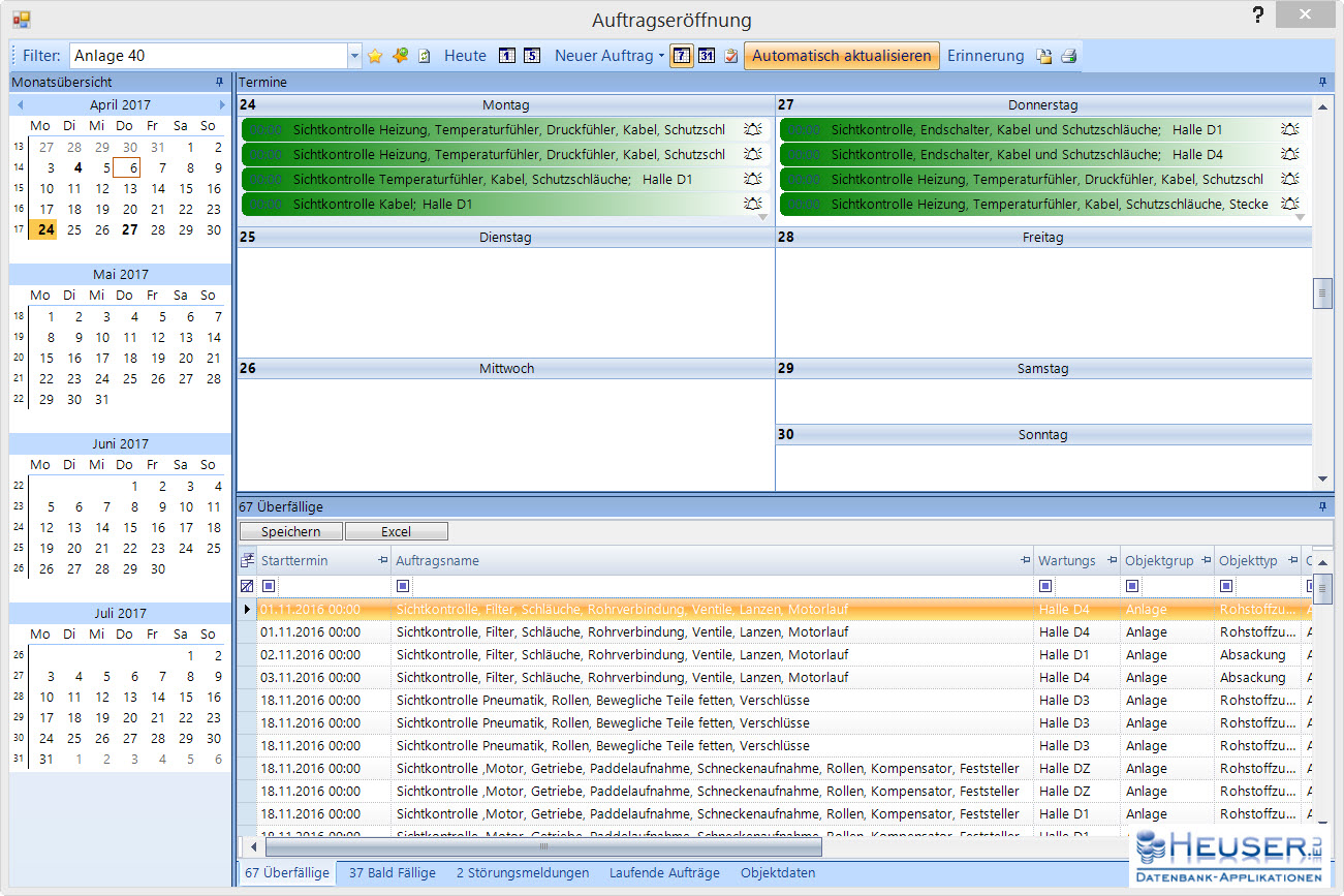 Dieses Programm ist Ihr Regiezentrum, dass Sie an fällige Termine erinnert und mit dem Sie Instandhaltungsaufträge aus verschiedenen Quellen erstellen können.