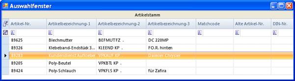 Klicken Sie doppelt auf das gewünschte Material, um die Materialdaten einschließlich Einkaufspreis aus dem Artikel-/Materialstamm zu übernehmen.