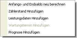 Ausgehend vom Anfangssaldo der markierten Zählerstandmeldung liest die Software alle danach folgenden Leistungen und berechnet die kumulierte Leistung und Restleistung der Leistungshistorie zum jeweiligen Stichtag neu. Die kumulierte Leistung und Restleistung des letzten Datensatzes wird in die markierte Zählerstandmeldung übernommen. |