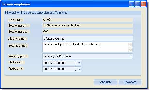 Mit diesem Programm können Sie Wartungsvorschläge oder Prognosen als Wartungstermine in den Wartungskalender des Objektes übernehmen, damit Sie daran erinnert werden.